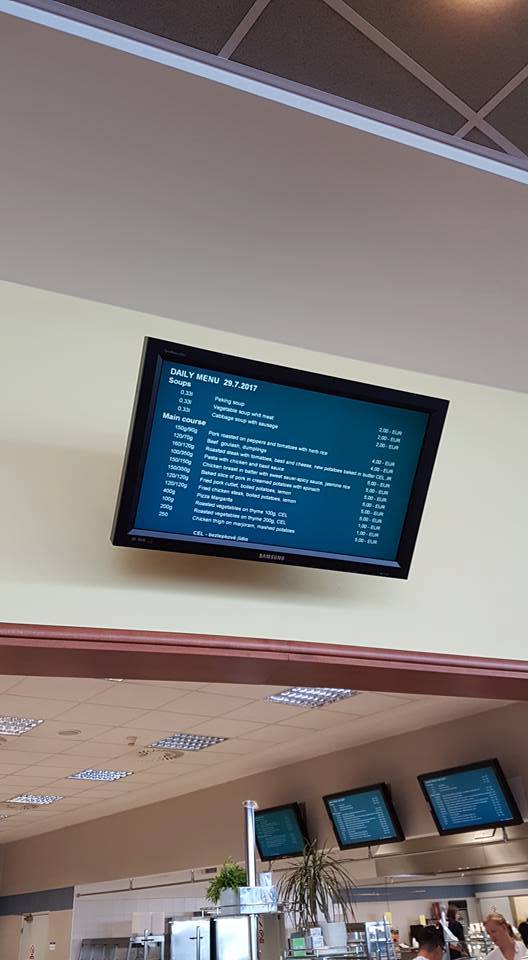 Цены в этом заведении дешевле, чем во многих ресторанах Праги.К примеру суп стоит 29 крон,гуляш 120 крон. Можно самому собрать салат.