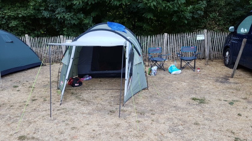 Пришлось возвращаться на стойку регистрации и говорить с сотрудником кемпинга. Оказалось что свободных мест больше нету, но у них есть места не отмеченные на карте. В одно из таких мест нас и передвинули. Оно действительно оказалось больше предыдущего, но машину все равно пришлось ставить на общей стоянке.