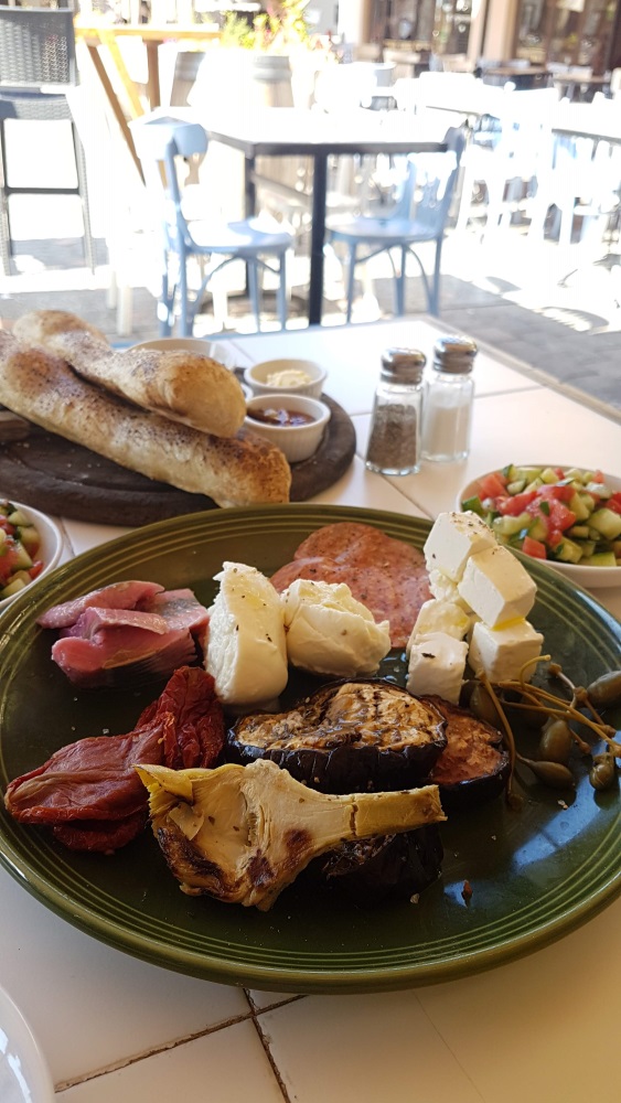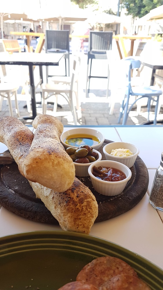 Мы начали субботнее утро с традиционного израильского завтрака в одной из Тель-Авивских кафешек.