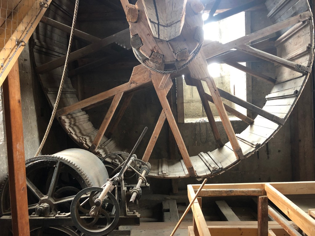 Также на пути к вершине башни встретится средневековый подъемный механизм, который крутили арестанты, что приводило в движение лифт со строительными материалами.