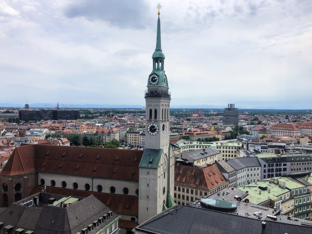 Сразу за площадью Мариенплац, справа от Старой ратуши, находится еще одна смотровая площадка Мюнхена. Это место знаковое для города, ведь именно здесь, на холме Петерсбергль монахи в VIII веке основали общину, вокруг которой затем образовался город.