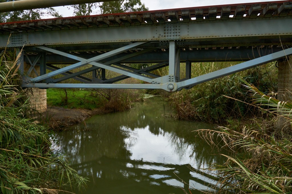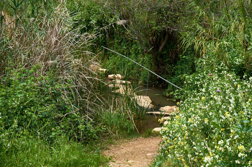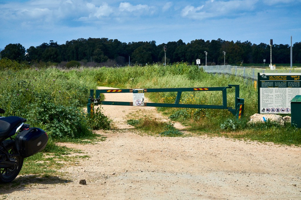 Поэтому нам пришлось выехать из Тель-Афек и проехать меньше километра до входа в национальный парк Яркон. До этой точки (карта).
