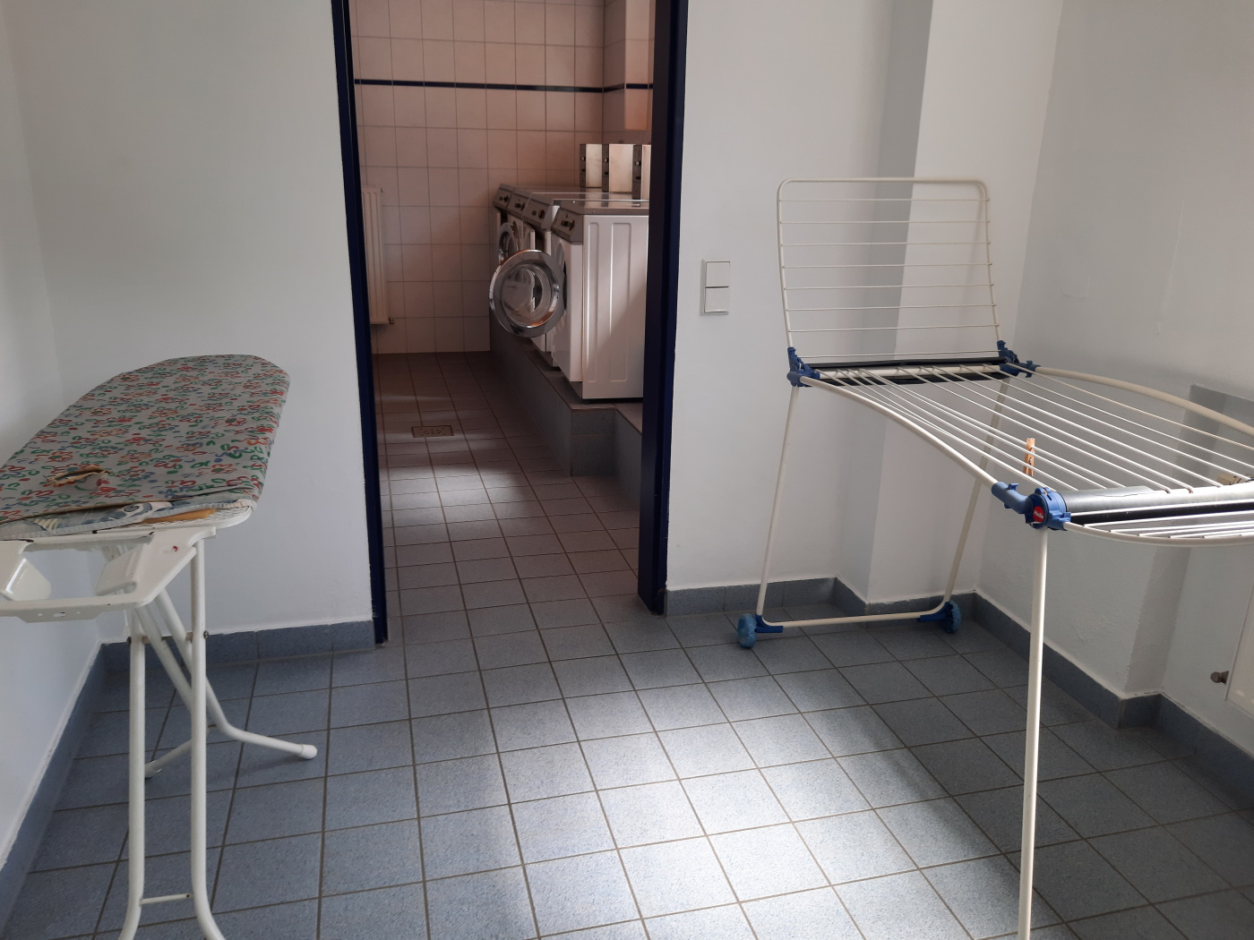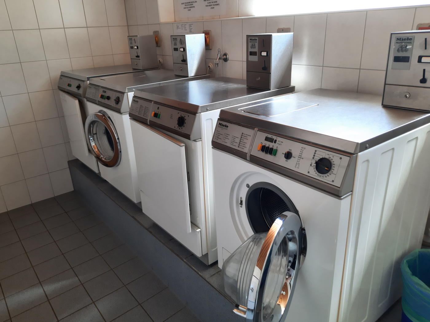 В санитарном зданиях есть стиральные машинки и сушилки.