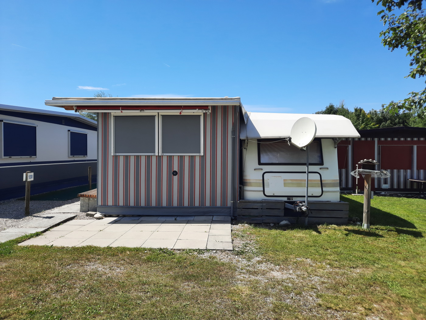С тех пор как мы купили Coleman Coastline Plus 3 мы предпочитаем ставить ее на отдельном месте. Эти места пронумерованы на карте. На многих из них стоят постоянные домики и кемперы, некоторые из них можно брать в аренду.