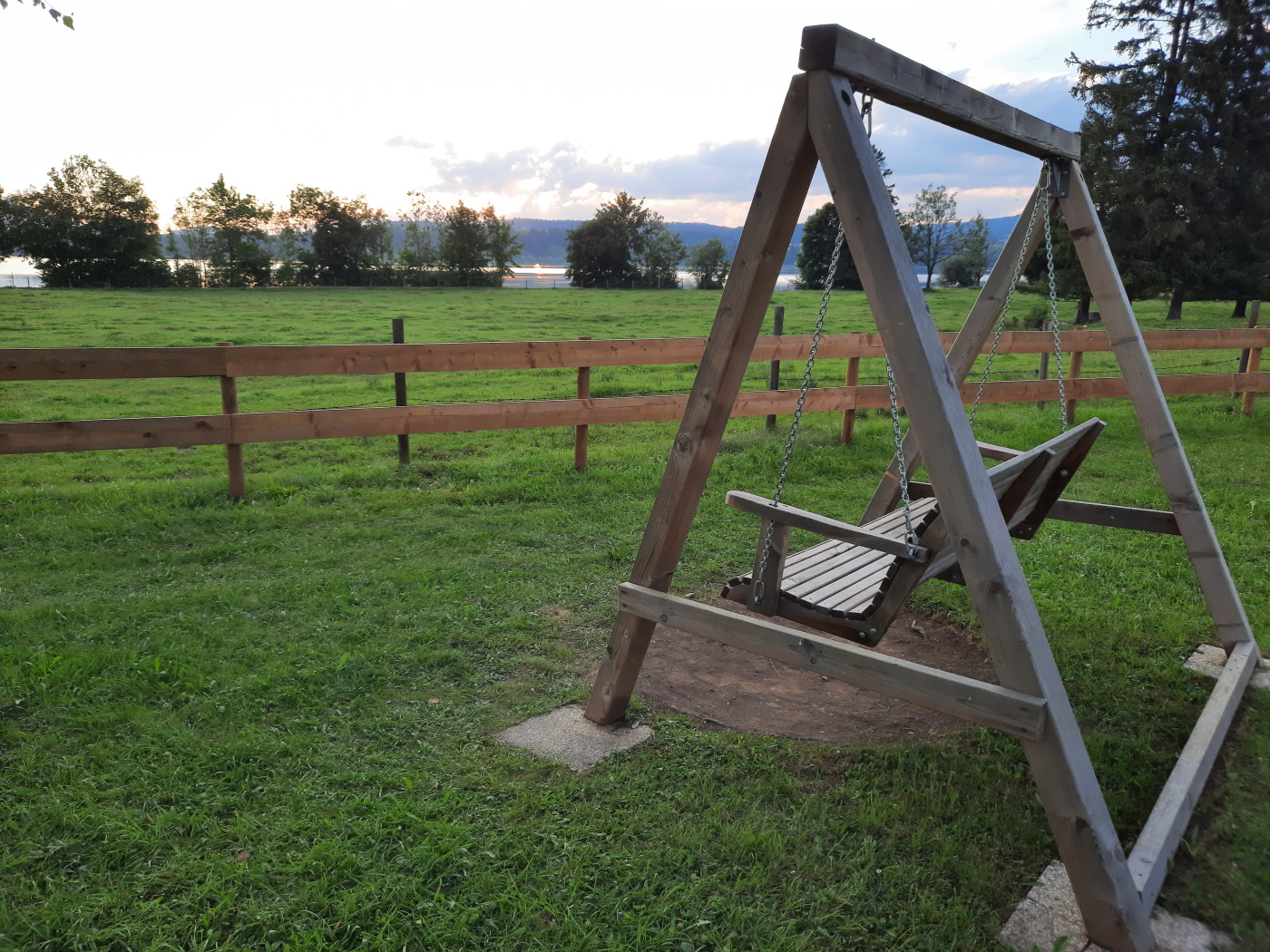 Пляж находится прямо за забором кемпинга. Вода даже летом прохладная, дно озера каменистое. В ста метрах от кемпинга находится прокат катамаранов и сапов.