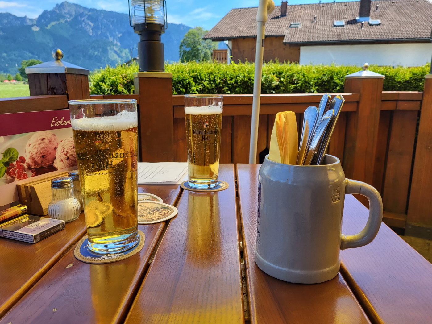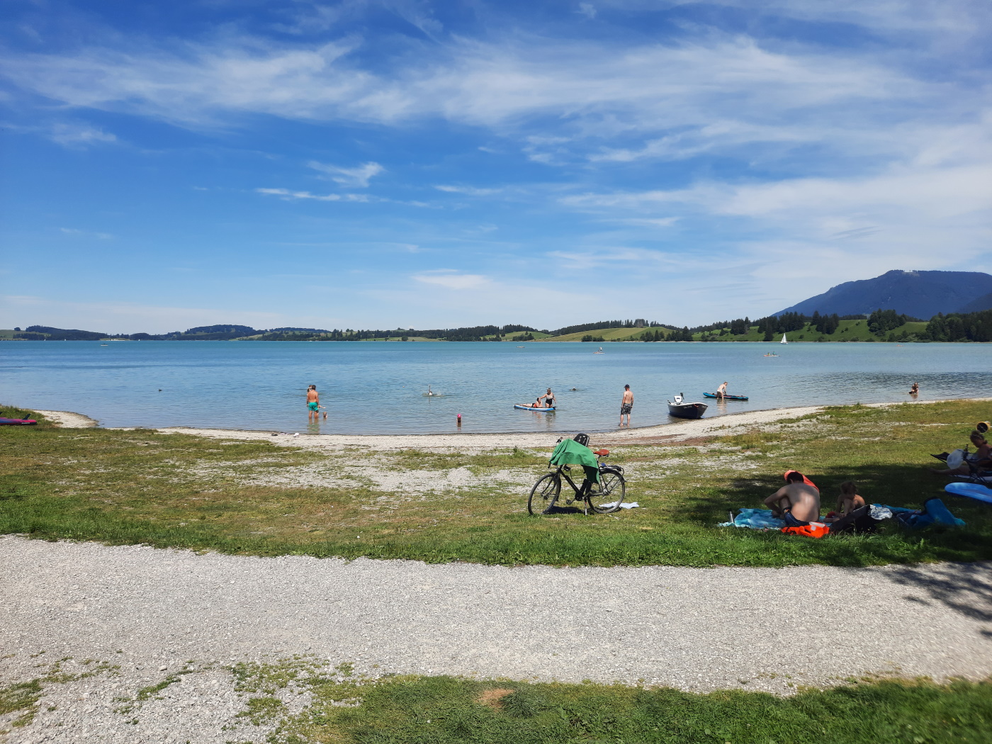 Ездили на велосипедах в соседний Фюссен, ходили в замок Нойшванштайн, купались в озере, плавали на катамаране, поднимались на фуникулерах на окрестные горы.