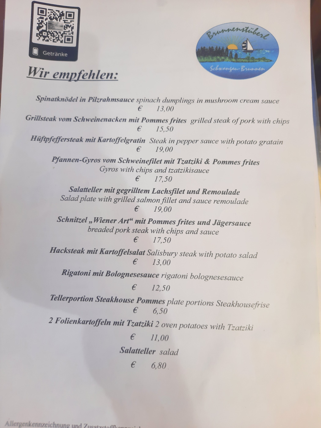 При кемпинге работает отличный ресторан Brunnenstüberl, кухня работает примерно до 20:00.